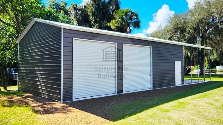 Leisure Isle Buildings offers high-quality metal garages tailored to fit your unique storage and workspace needs. Our garages are ideal for storing vehicles, equipment, tools, and more, with enough space to serve as a workshop or hobby area. Built with durability in mind, each garage is crafted from premium materials, ensuring a sturdy structure that can withstand the test of time and the elements. Choose from a variety of designs, layouts, and customization options, including door types, window placements, and roof styles, to create a garage that works for you. Our team is here to help you plan a space that suits your needs, delivering a structure that is not only functional but also enhances your property’s value and appeal.